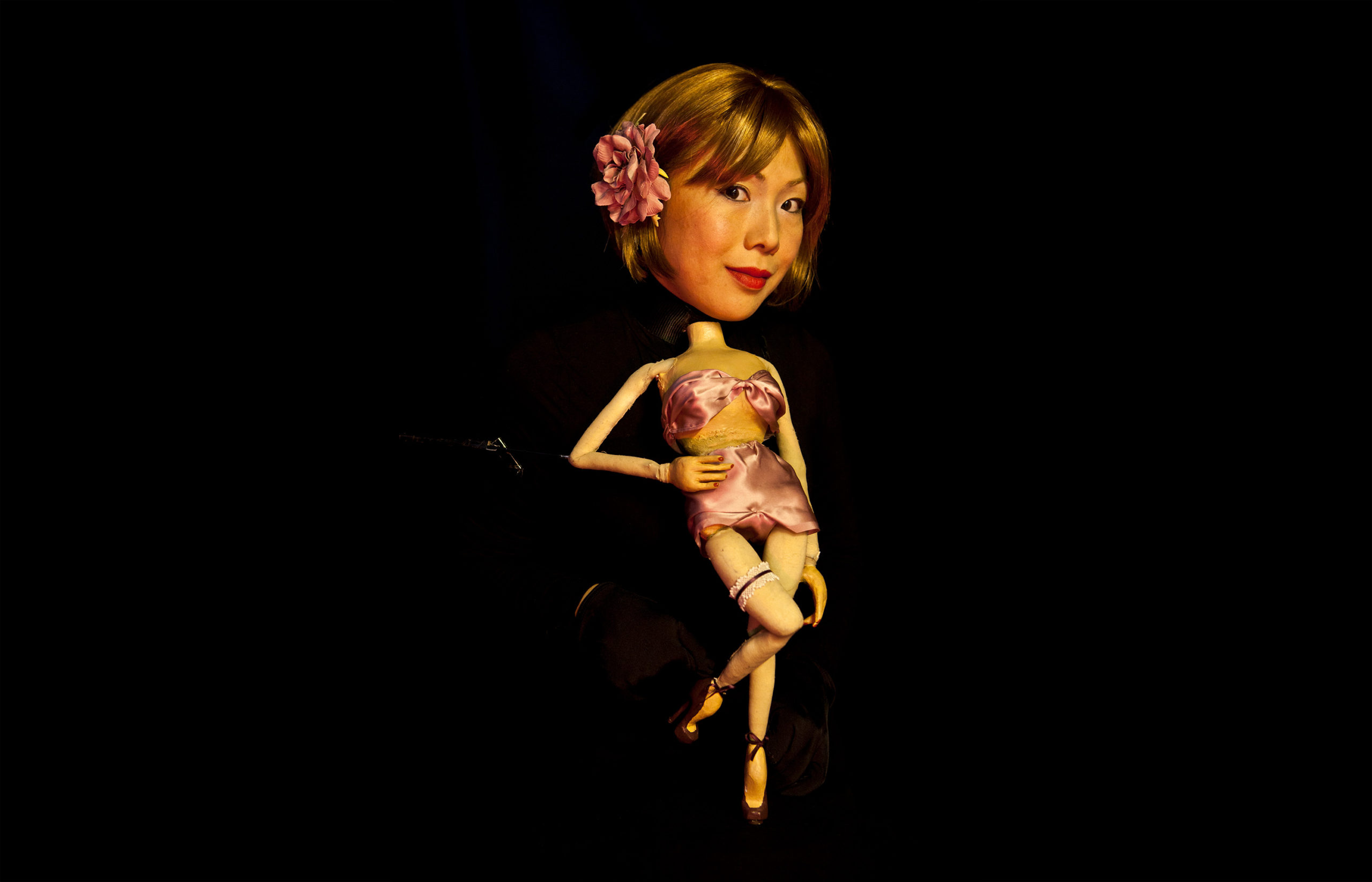 Mademoiselle Lychee can be presented in a cabaret format or as a peepbox show. The peepbox show first opened at the Festival Mondial des Théâtres de Marionnettes in 2013.